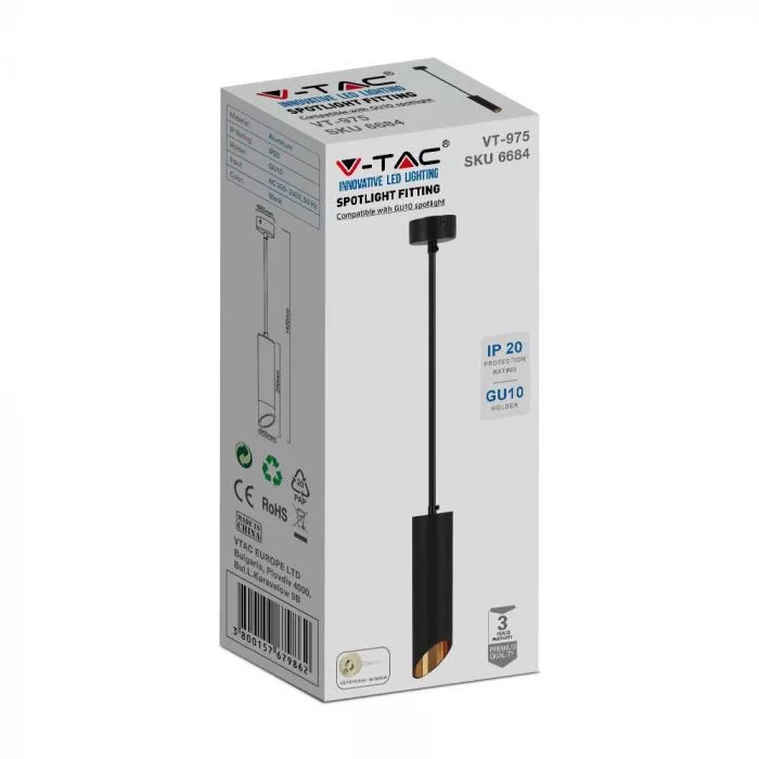 V-TAC 1 x GU10 függeszték 55 x 200mm - fekete - 6684