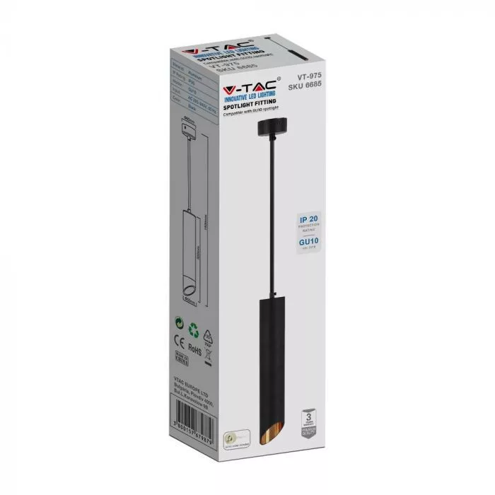 V-TAC 1 x GU10 függeszték 55 x 300mm - fekete - 6685