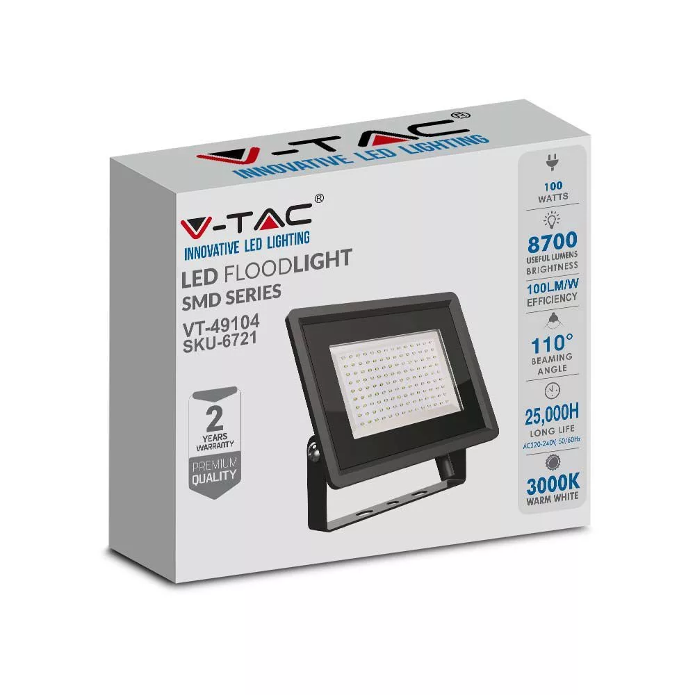 V-TAC 100W LED reflektor 100° 3000K fekete házas E széria - 6721