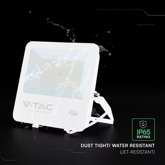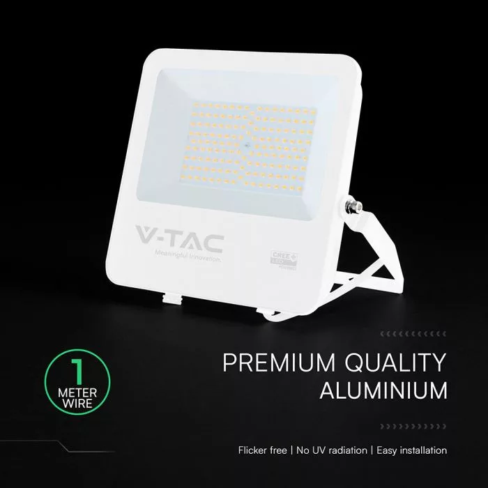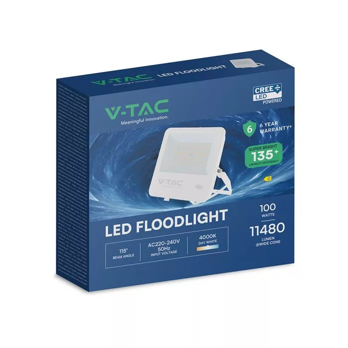 V-TAC 100W LED reflektor 115° 4000K 135LM/W fehér házas (CREE Chip) 1M hosszú vezetékkel - 242106