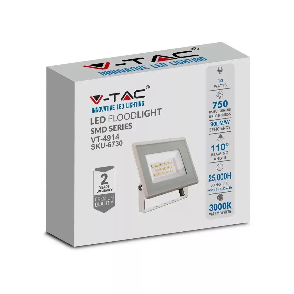 V-TAC 10W LED reflektor 100° 3000K fehér házas E széria - 6730