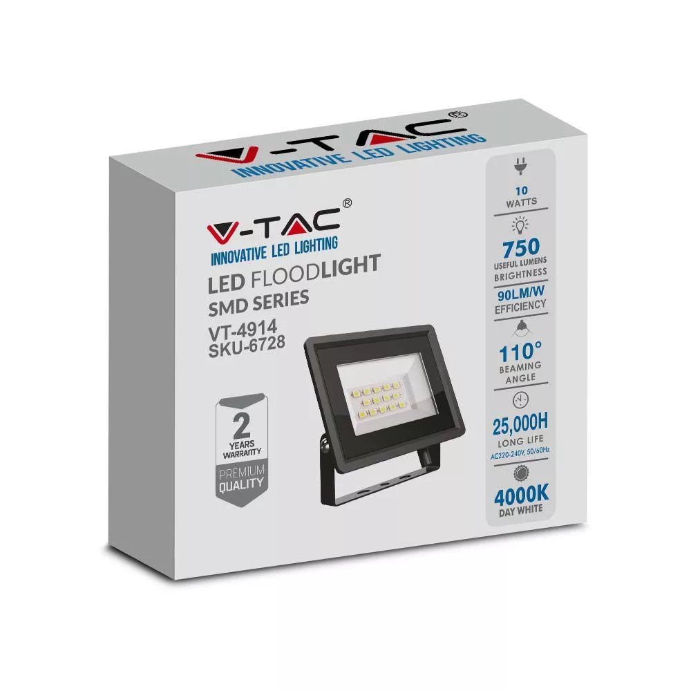 V-TAC 10W LED reflektor 100° 4000K fekete házas E széria - 6728