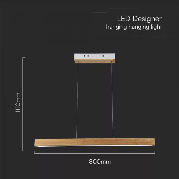 V-TAC 12W LED dizájn függeszték - Fa hatású - 4000K - 23100