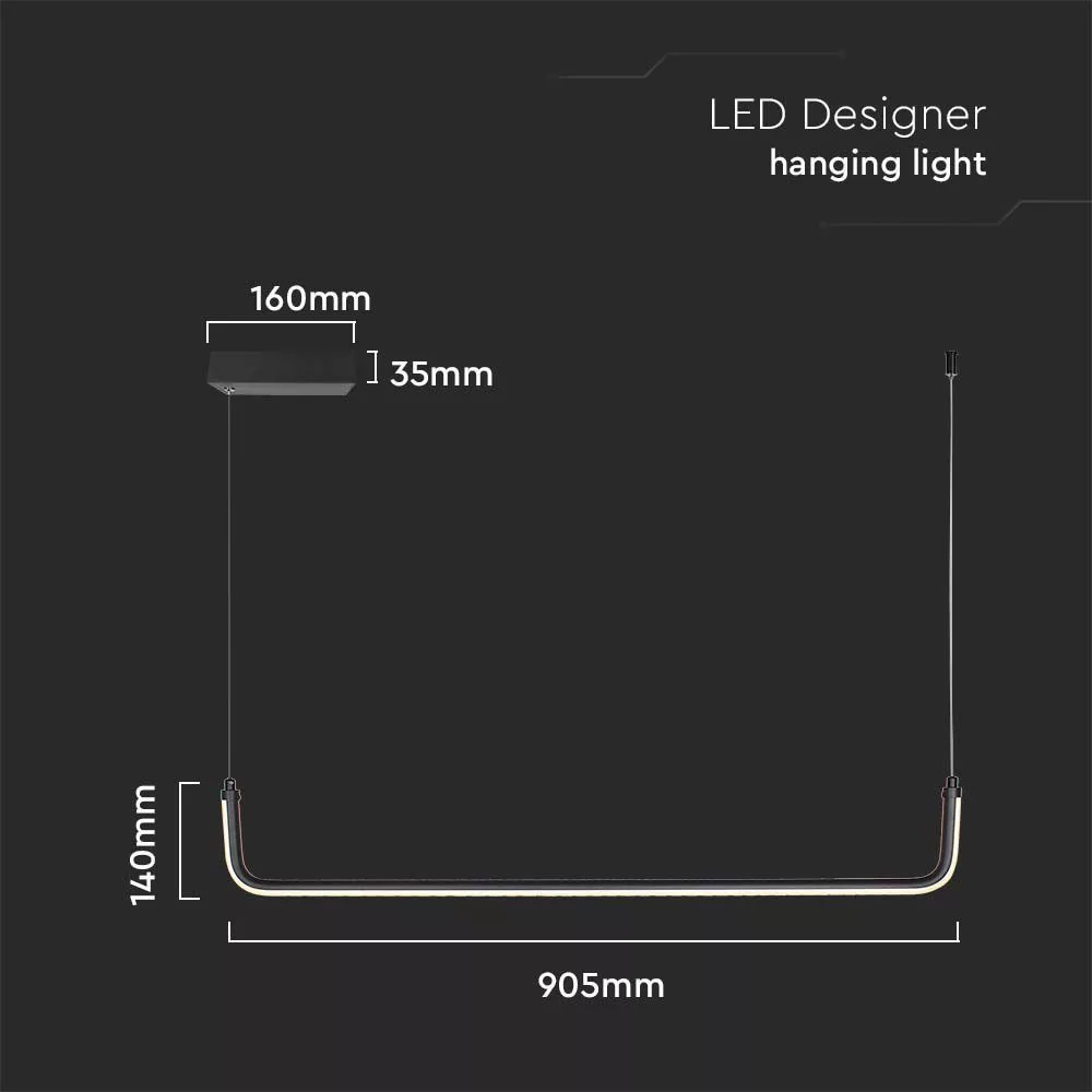 V-TAC 12W design függeszték - fekete - 4000K  - 6939