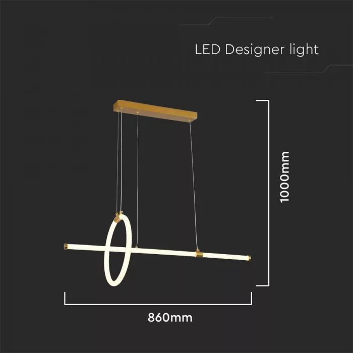 V-TAC 16W LED dizájn függeszték - arany - 3000K - 8023