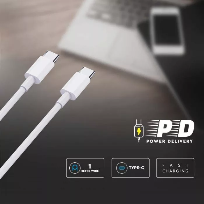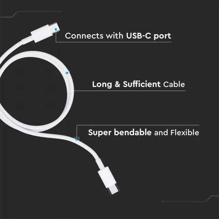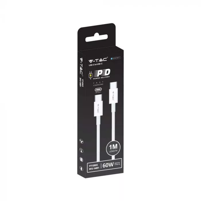 V-TAC 1M C-C Típusú USB kábel fehér - 6681