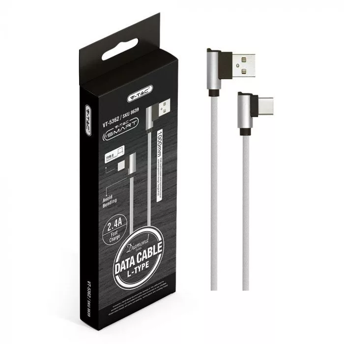 V-TAC 1M C Típusú USB kábel ezüst - gyémánt széria - 8639