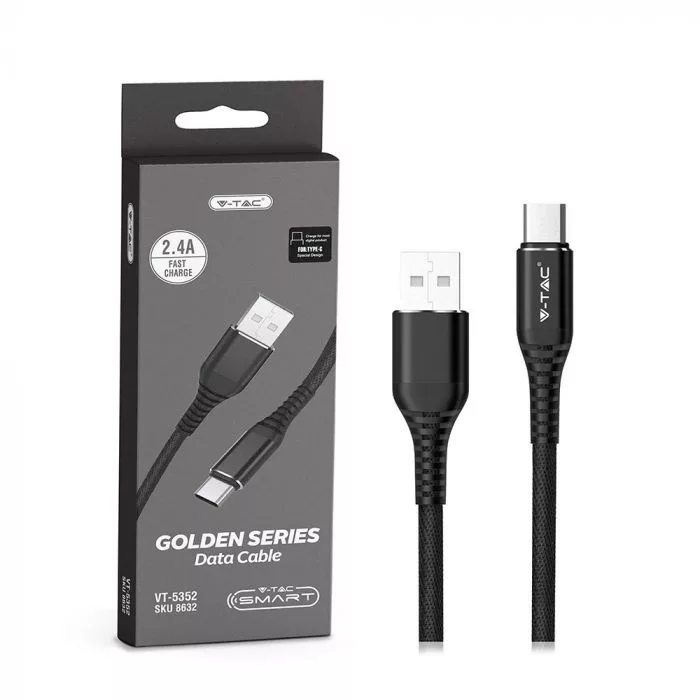 V-TAC 1M C Típusú USB kábel fekete - gyémánt széria - 8632