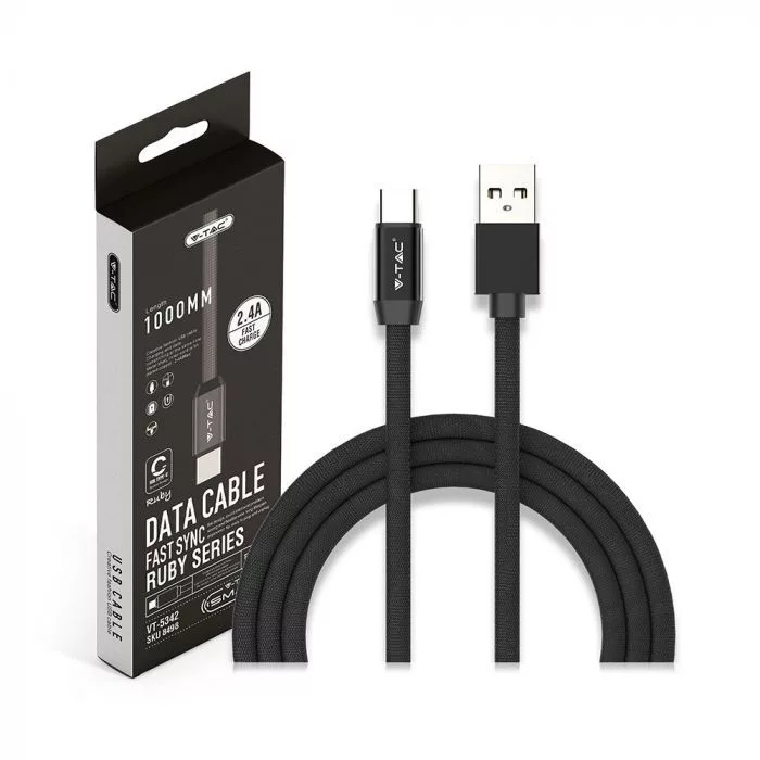 V-TAC 1M C Típusú USB kábel fekete - rubin széria - 8498