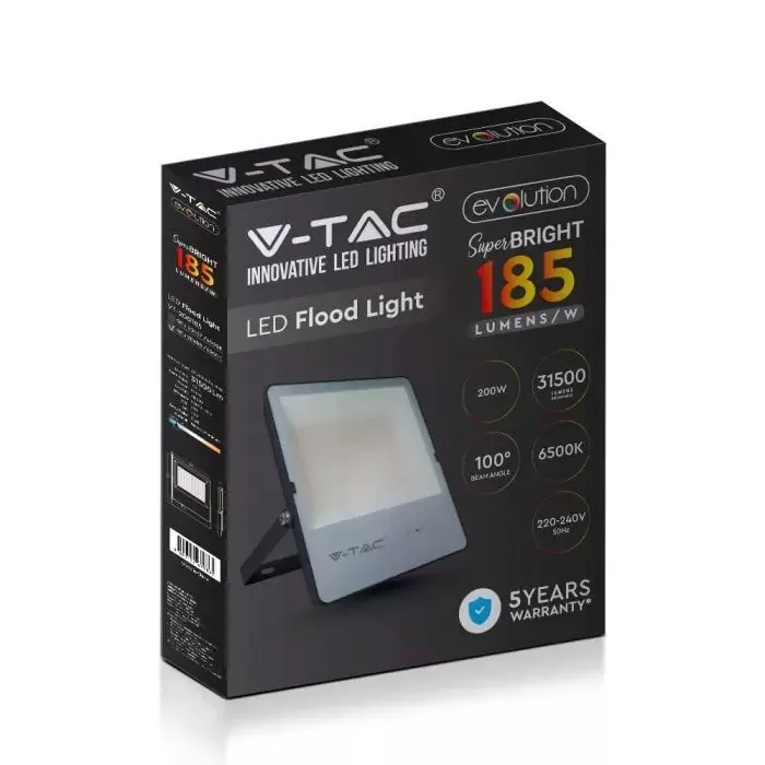 V-TAC 200W LED reflektor 100° 6400K 185LM/W fekete házas (Samsung Chip) - 20458