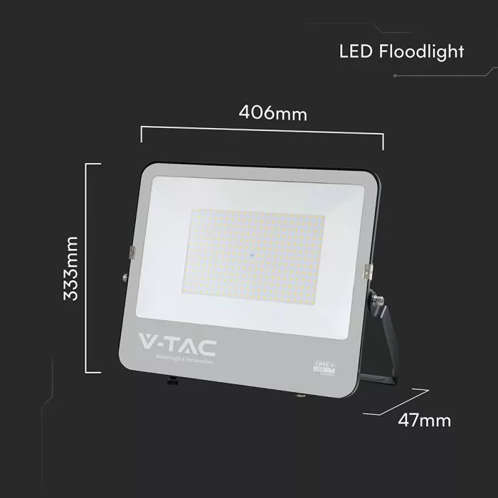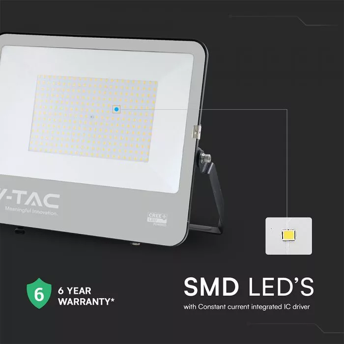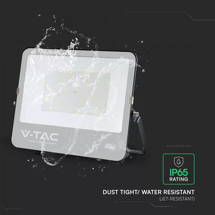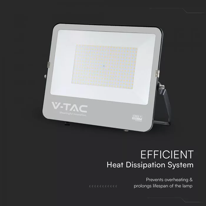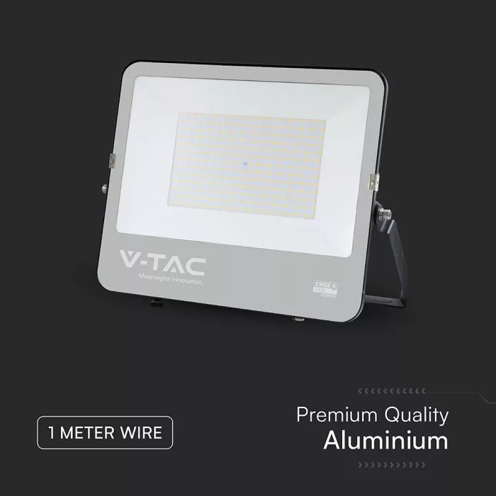 V-TAC 200W LED reflektor 115° 6500K 135LM/W fekete házas (CREE Chip) 1M hosszú vezetékkel - 232216
