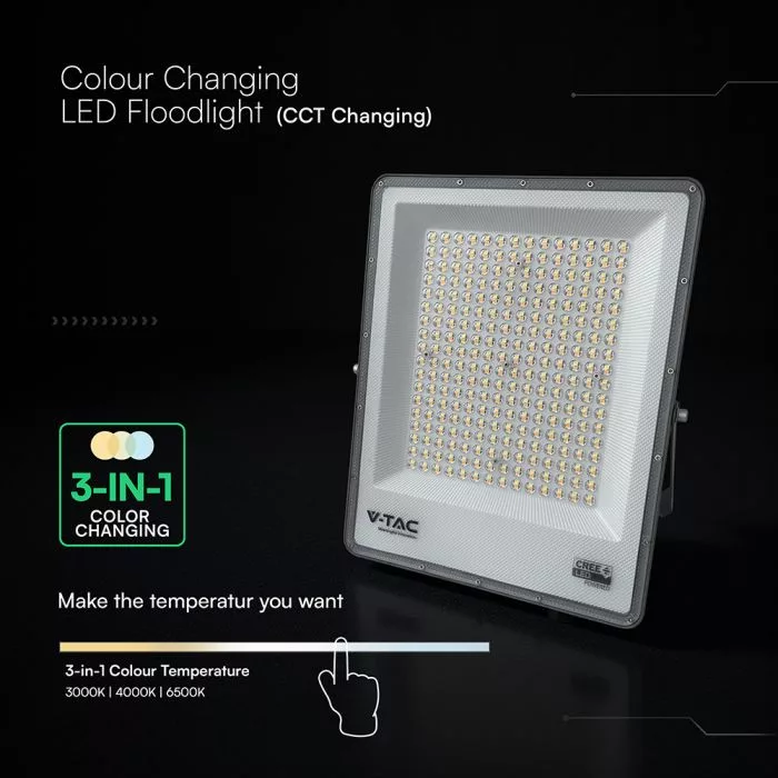 V-TAC 200W LED reflektor CCT 3in1 Fekete házas (Cree Chip) - 240706