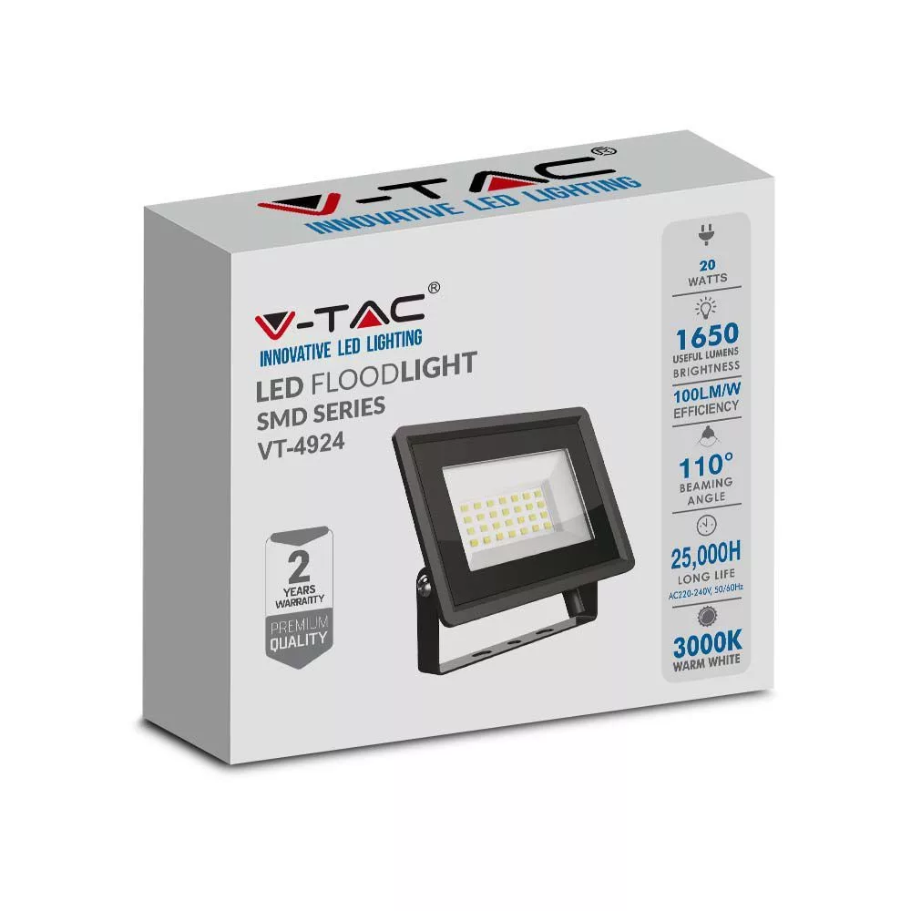 V-TAC 20W LED reflektor 100° 3000K fekete házas F széria - 6737