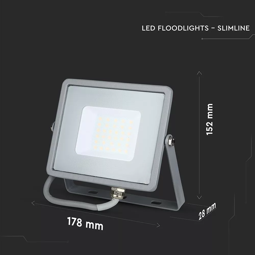 V-TAC 30W LED reflektor 100° 6400K szürke házas (Samsung Chip) - 456
