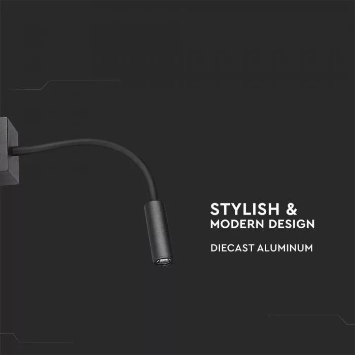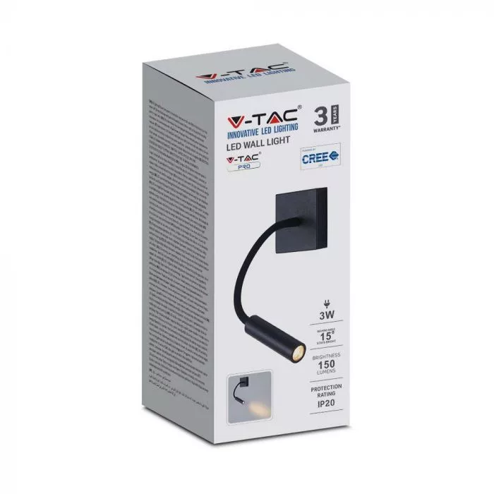 V-TAC 3W LED Fali olvasó lámpa fekete 3000K - 211485