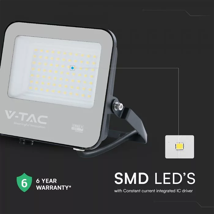 V-TAC 50W LED reflektor 115° 6500K 135LM/W fekete házas (CREE Chip) - 232176