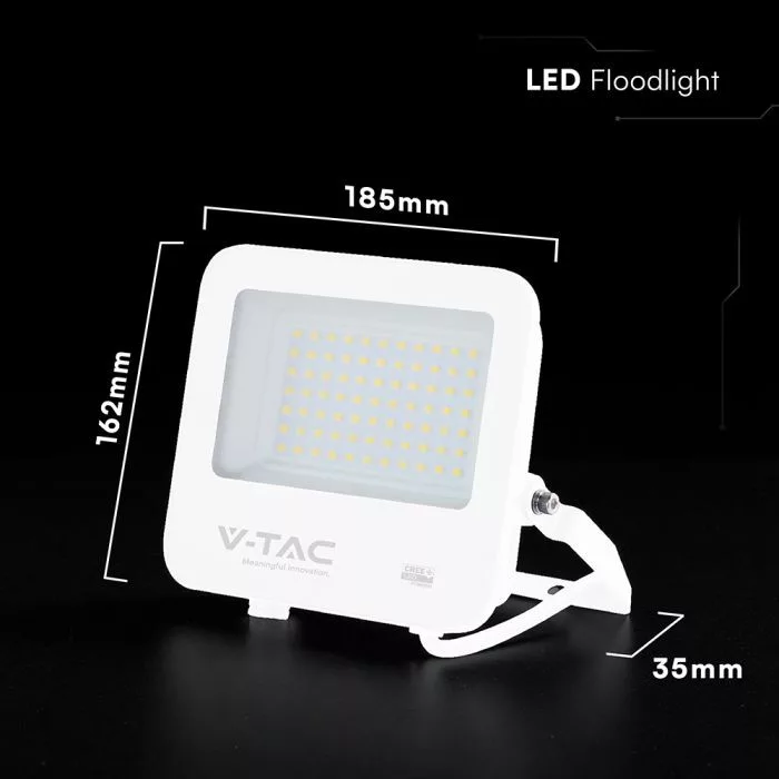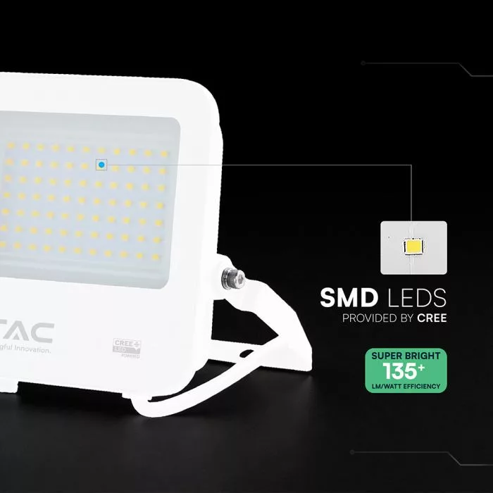 V-TAC 50W LED reflektor 6500K 135LM/W Fehér házas, Szürke matt üveggel (CREE Chip) - 242096