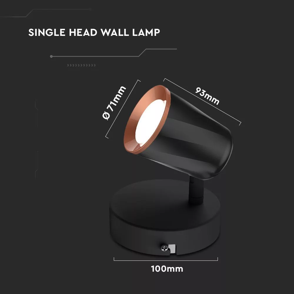 V-TAC 6W LED Fali lámpa fekete 3000K - 218251