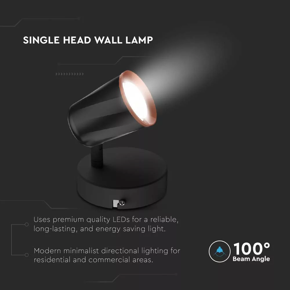 V-TAC 6W LED Fali lámpa fekete 4000K - 218253