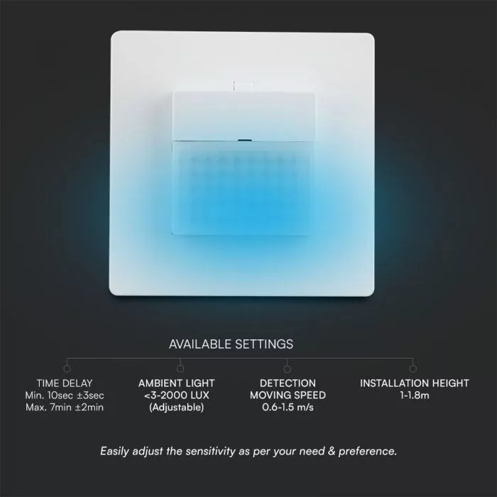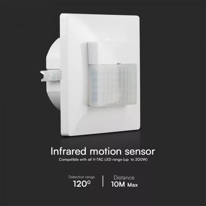V-TAC Beépíthető mozgásérzékelő 120°, fehér színű - 23425