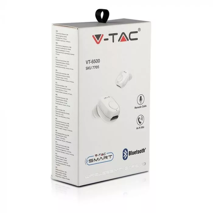 V-TAC Bluetooth-os fülhallgató 55mAh fehér - 7705