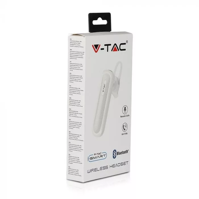 V-TAC Bluetooth-os headset 70mAh fehér - 7701