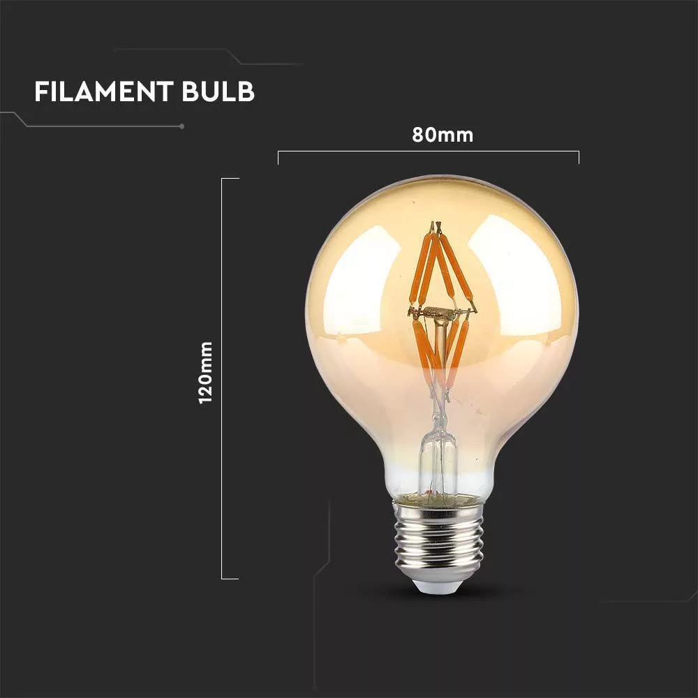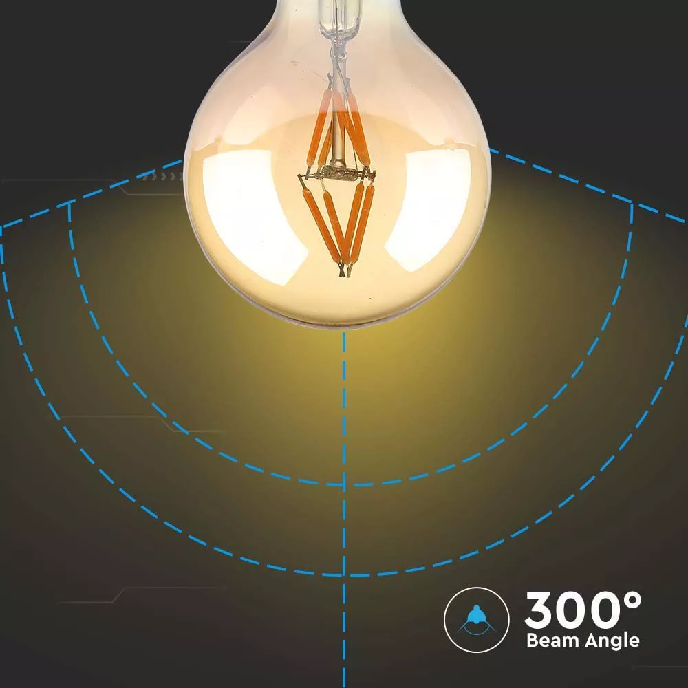 V-TAC Borostyán LED izzó filament COG E27 G80 4W 2200K - 217148