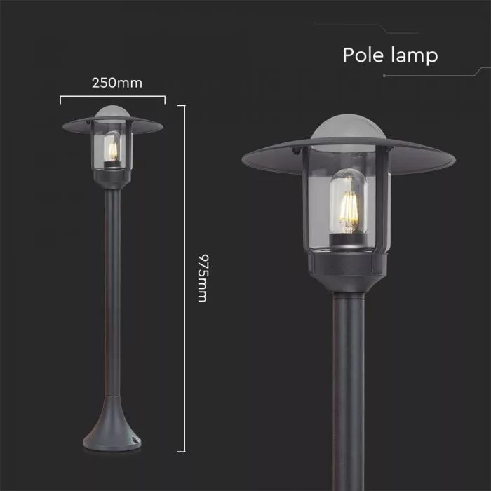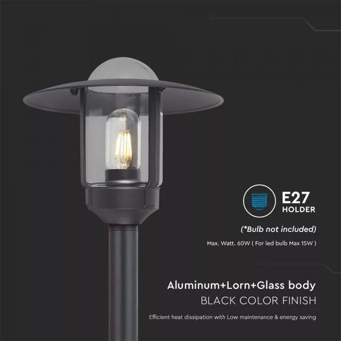 V-TAC E27 Kerti állólámpa matt fekete üveg búrával - 10423