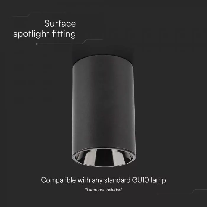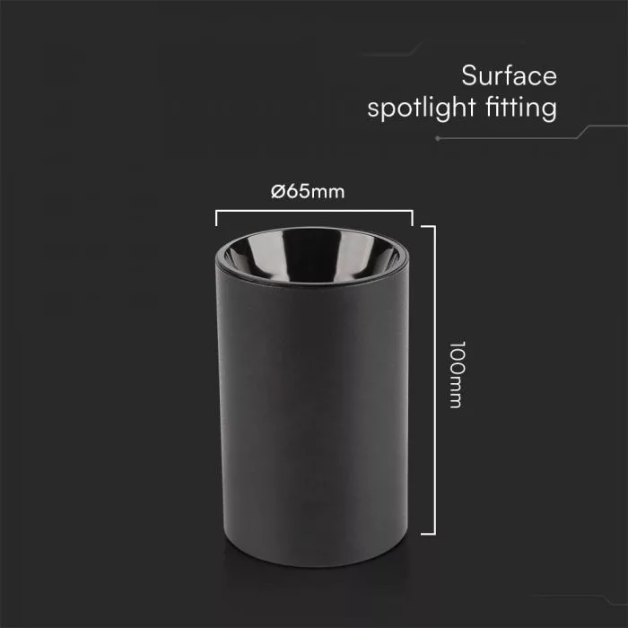 V-TAC Fekete falon kívüli kör alakú GU10 spot keret - 10380