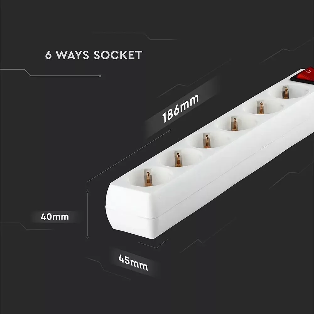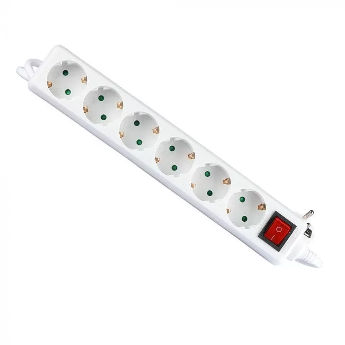 V-TAC Hosszabbító kapcsolóval 6 csatlakozós 1,5m kábel fehér színű - 8768