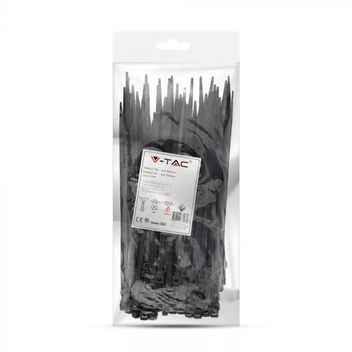 V-TAC Kábelkötegelő csomag (100db) UV álló 4,8x200 mm - fekete - 11177