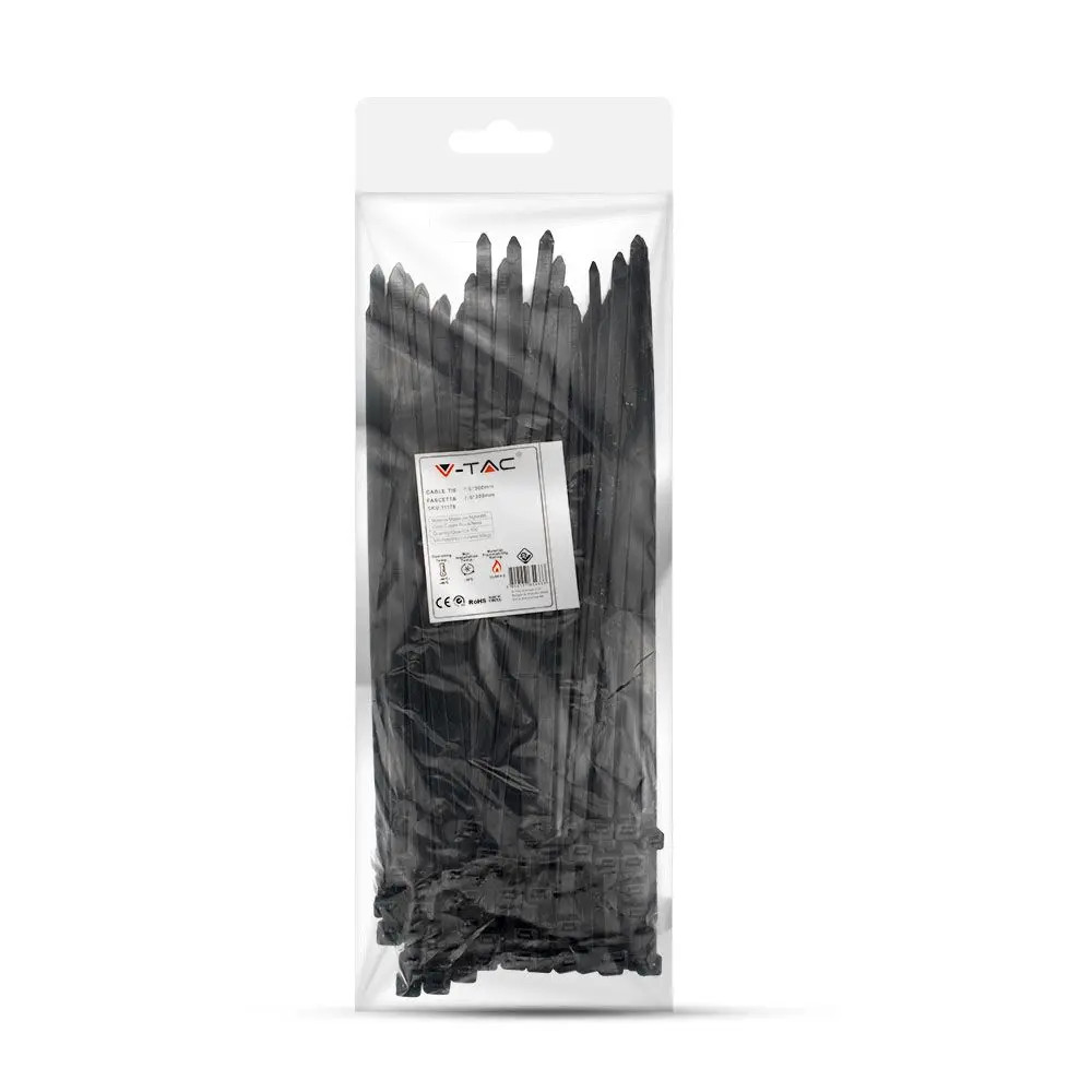 V-TAC Kábelkötegelő csomag (100db) UV álló 7,6x300 mm - fekete - 11178