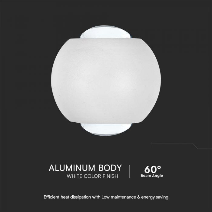 V-TAC LED 2W Fali lámpatest, Fehér - 4000K - IP54 - 10587
