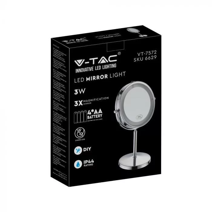 V-TAC LED 3W 4xAA  sminktükör 6400K - 6629