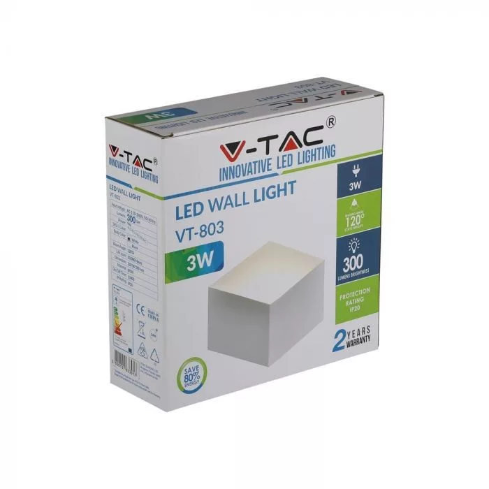 V-TAC LED 3W fali lámpa - fehér - 3000K - 8344