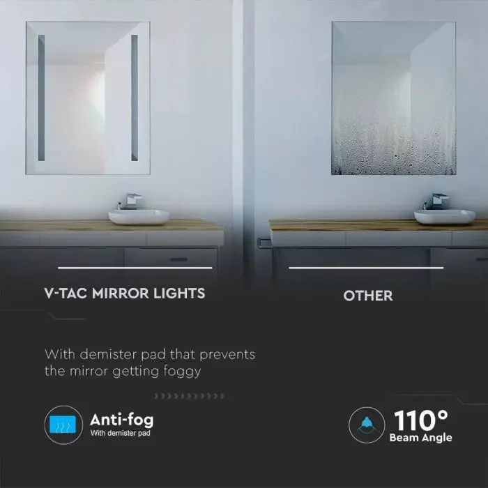 V-TAC LED 42W fürdőszobai tükör állítható színhőmérséklet 800x600mm IP44 - 2140471