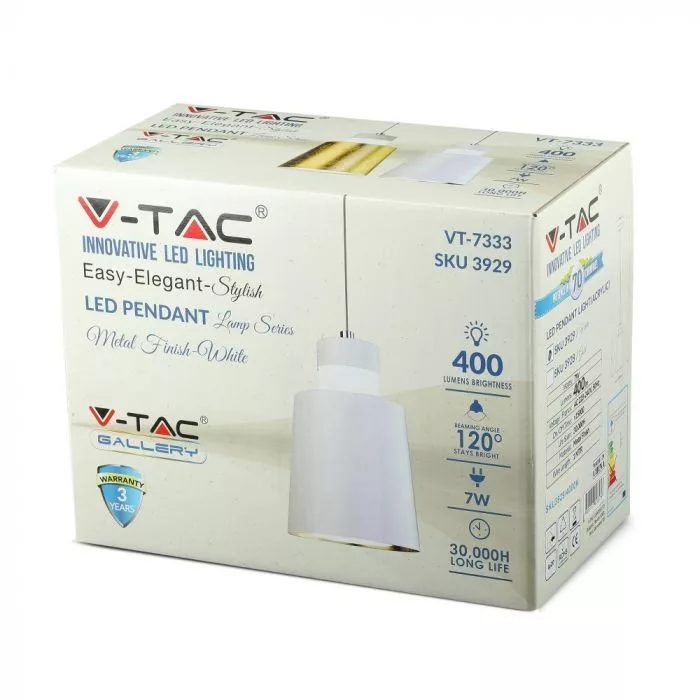 V-TAC LED ACRYLIC FÜGGESZTÉK 7W - fehér - 4000K - 3929