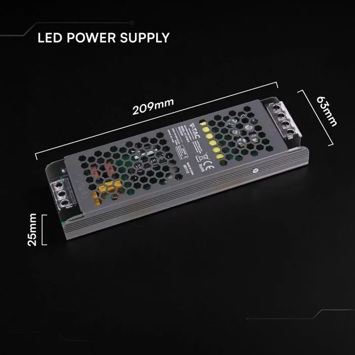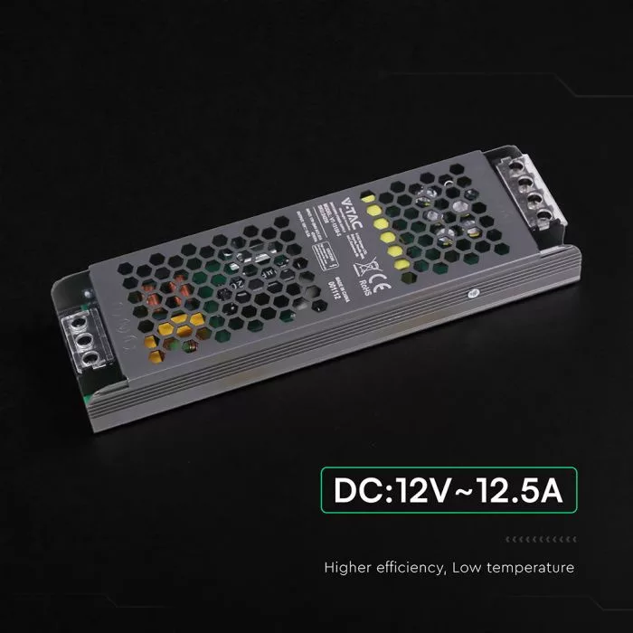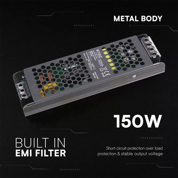 V-TAC LED Fémházas szerelhető SLIM tápegység 150W 12.5A 12V IP20 - 24258