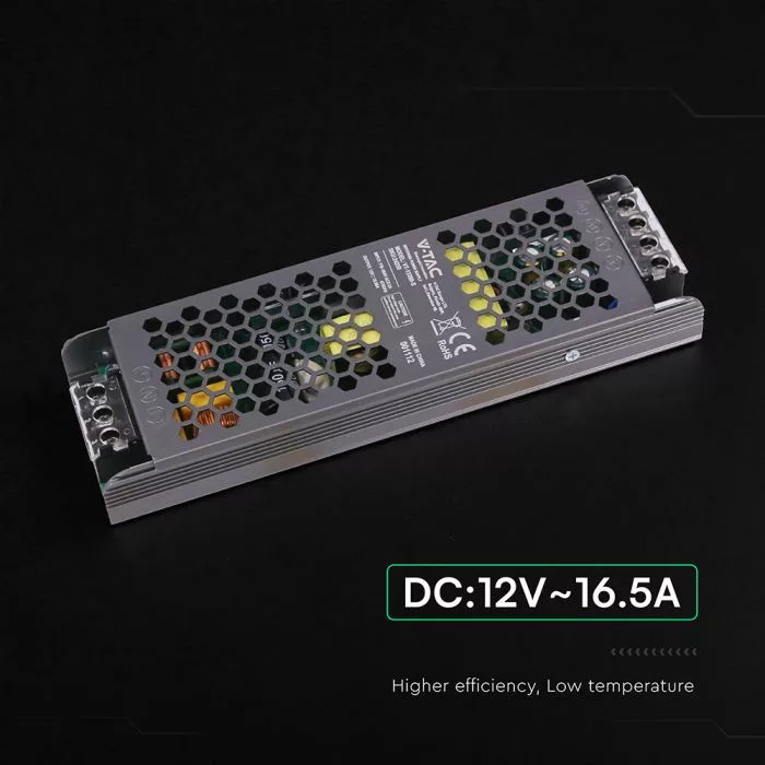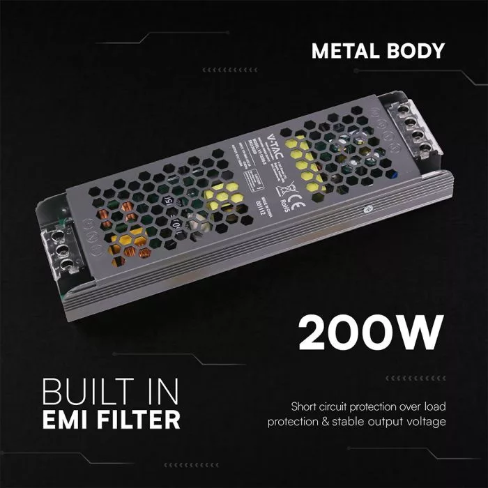 V-TAC LED Fémházas szerelhető SLIM tápegység 200W 16.5A 12V IP20 - 24259