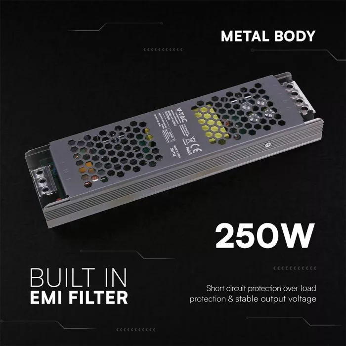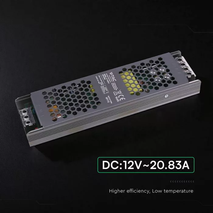 V-TAC LED Fémházas szerelhető SLIM tápegység 250W 20.83A 12V IP20 - 24260