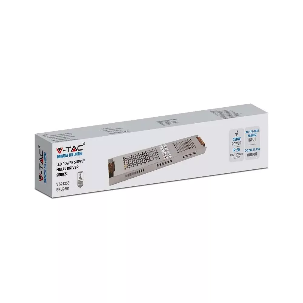 V-TAC LED Fémházas szerelhető tápegység 250W 10.41A 24V IP20 - 2691