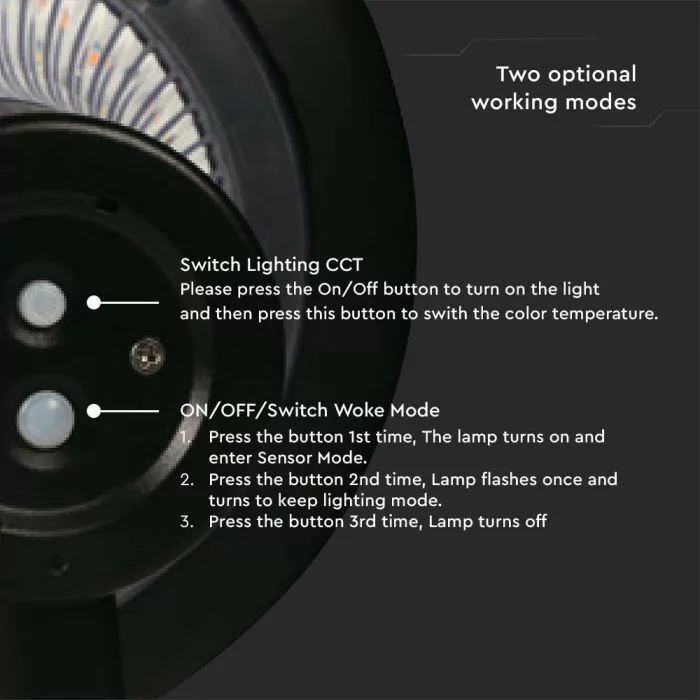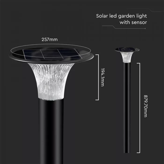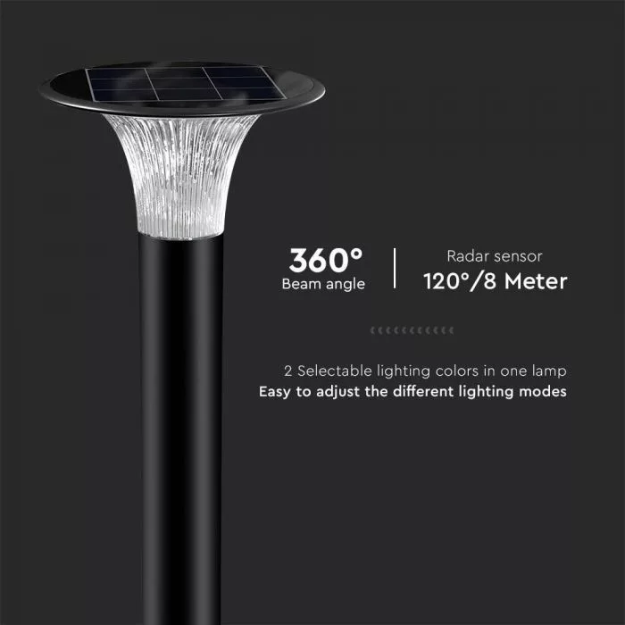 V-TAC LED Napelemes (Solar) álló lámpa 15W - 6000K + 4000K - fekete - 23006