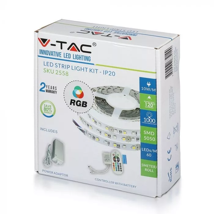 V-TAC LED SZALAG SZETT RGB 5050 60LED/m 12V IP20 - 5m - 2558