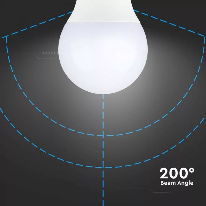 V-TAC LED izzó E14 A60 8.5W 200° 3000K gömb (Samsung Chip) - 21114