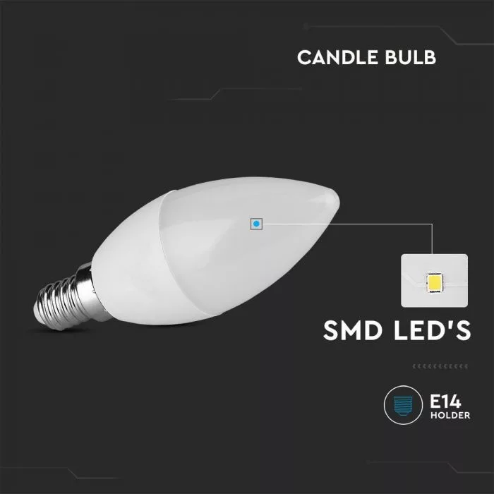 V-TAC LED izzó E14 C37 3.7W 180° 6500K gyertya - 8041