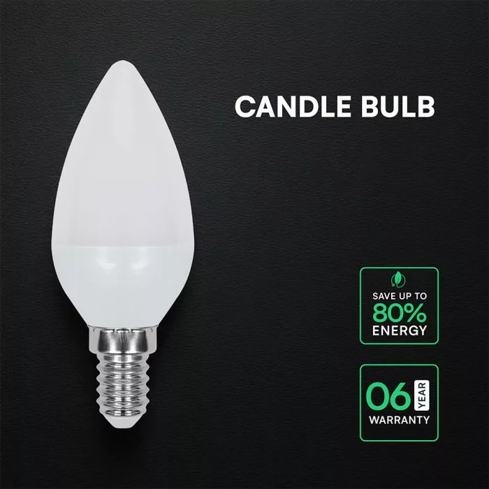 V-TAC LED izzó E14 C37 4.5W 180° 6500K gyertya (CREE Chip) - 21424116