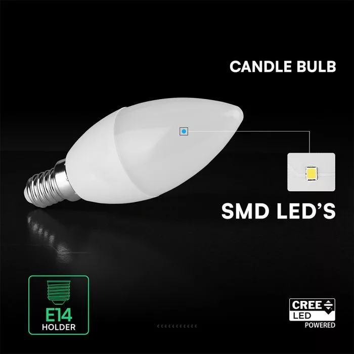 V-TAC LED izzó E14 C37 6.5W 180° 4000K gyertya (CREE Chip) - 2111216