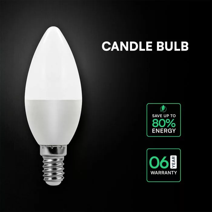 V-TAC LED izzó E14 C37 6.5W 180° 6500K gyertya (CREE Chip) - 2111316
