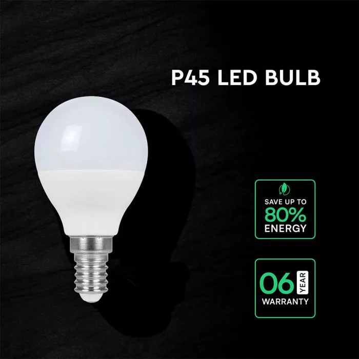 V-TAC LED izzó  E14 P45 6.5W 180° 3000K kisgömb (CREE Chip) - 218636