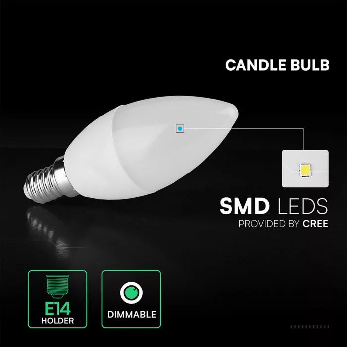V-TAC LED izzó dimmelhető E14 C37 5.5W 180° 4000K gyertya (CREE Chip) - 2120186-6